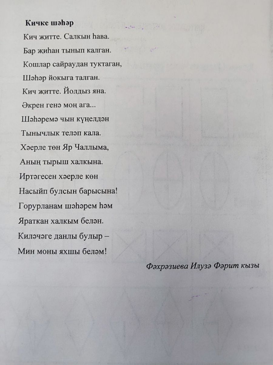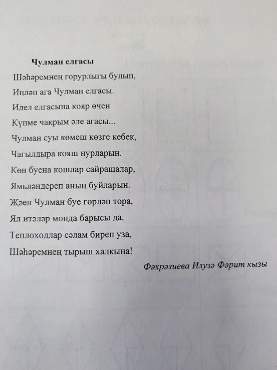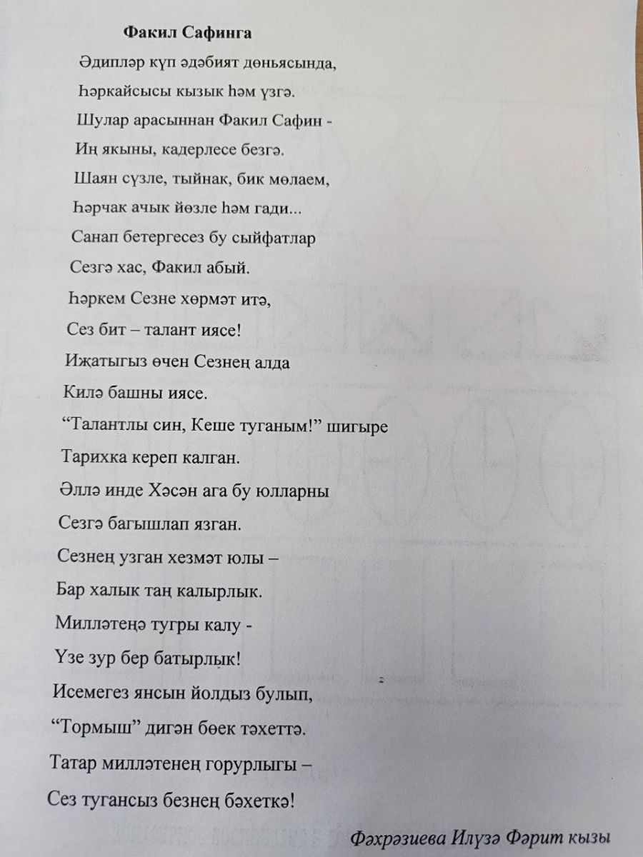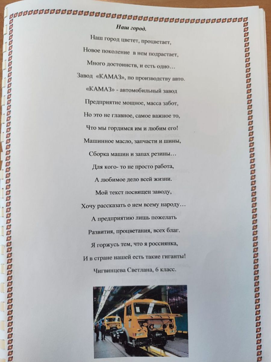 В рамках подготовки к празднованию 400-летия города Набережные Челны стартовала акция "Сборник стихов собственного сочинения о любимом городе". Первыми участниками стали: ученица 5 класса Шайхразиева Алия и школьный библиотекарь Фахразиева Илюза Фаритовна. Так же в архиве сборника творческих работ учащихся "Родник вдохновения" напечатано стихотворение "Наш город" выпускницы школы Чигвинцевой Светланы.