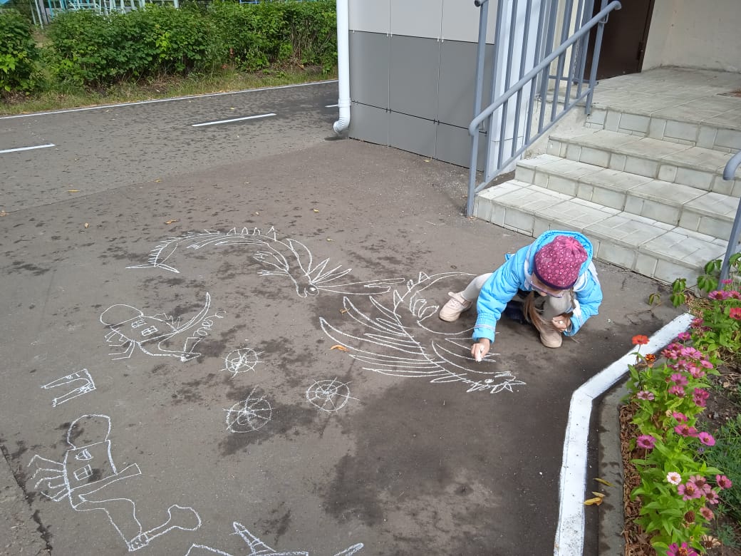 8.09.22 Среди 5-6 классов прошёл конкурс рисунков на асфальте "Моя безопасность на дороге"