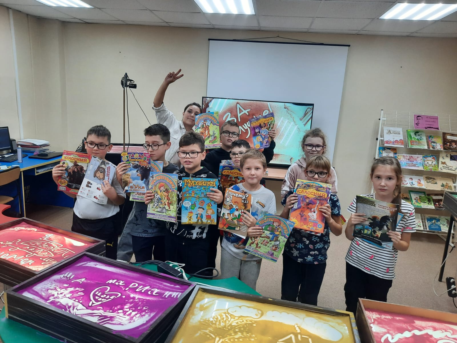 16.09.22 ребята 3 класса посетили городскую библиотеку 14, где поучаствовали в мастер-классе по песочной анимации.