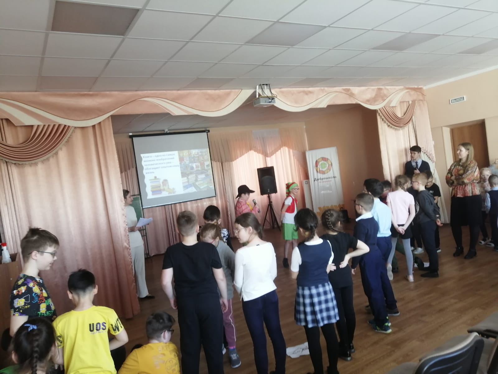 21 апреля учащиеся 5в,5г классов подготовили для младших школьников праздник "Книжкины именины" Ребята играли, отгадывали героев сказов, выполняли интересные задания, танцевали под мелодии из мультфильмов.