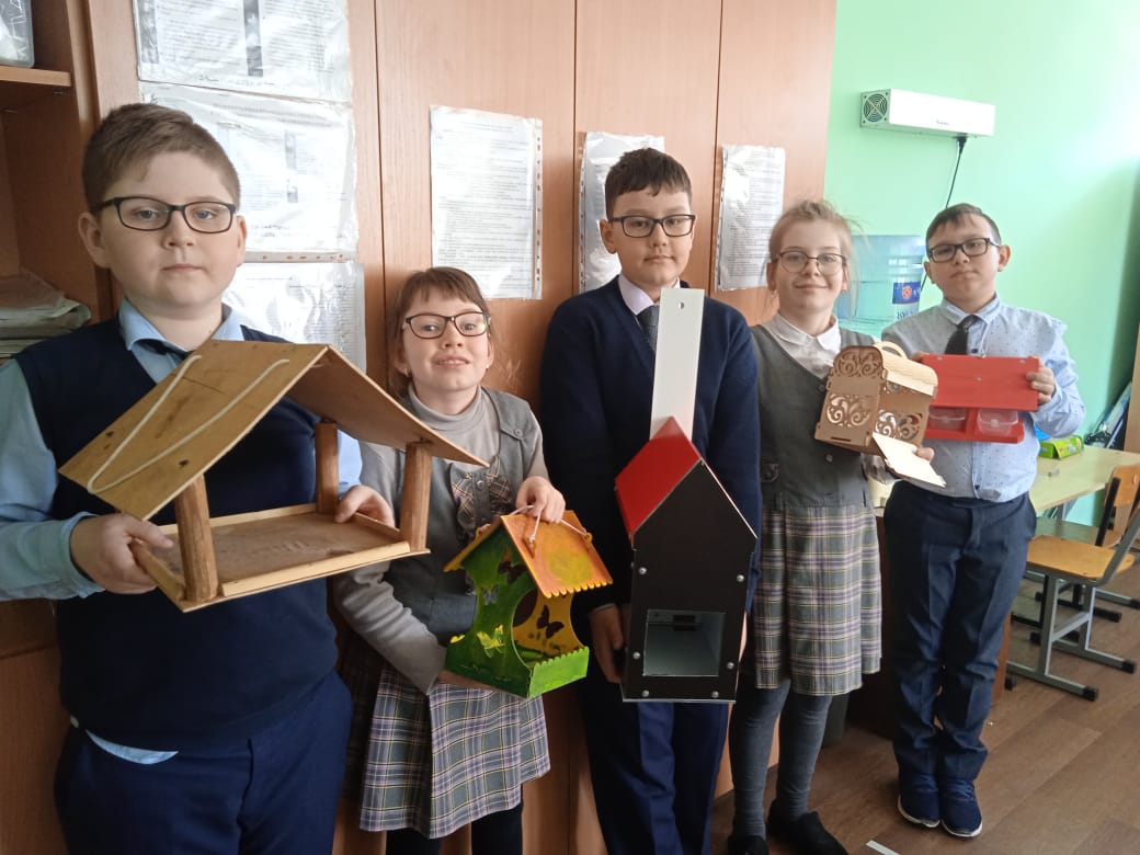 В соответствии с планом МО и Н РТ, в рамках Дней защиты от экологической опасности и городской акции "Добро пожаловать скворцы" ученики 3 класса совместно с родителями изготовили кормушки для птиц и закрепили их на территории школы. Теперь на территории школы постоянно слышны благодарственные птичьи голоса.