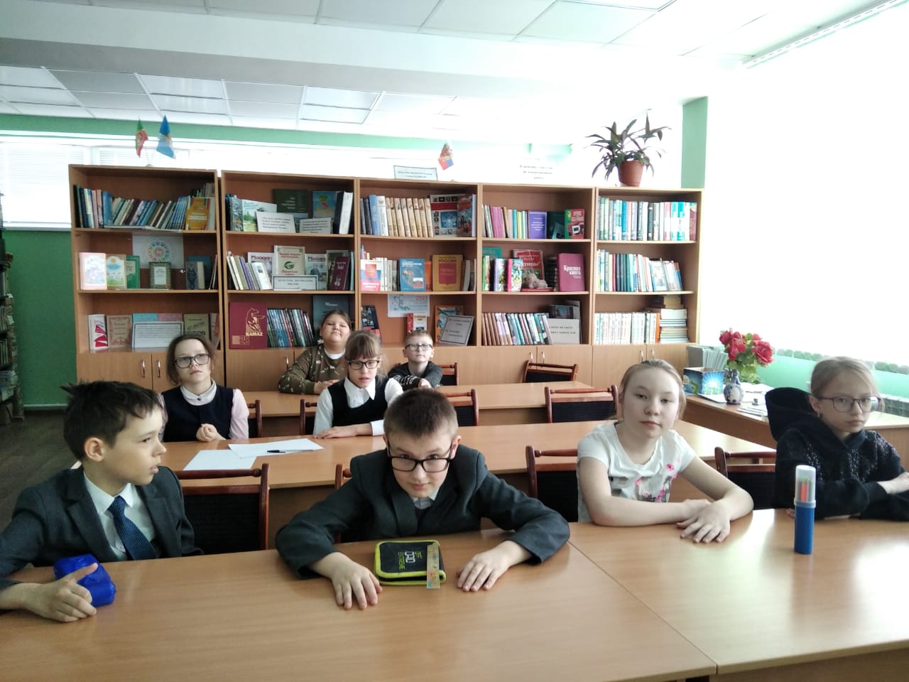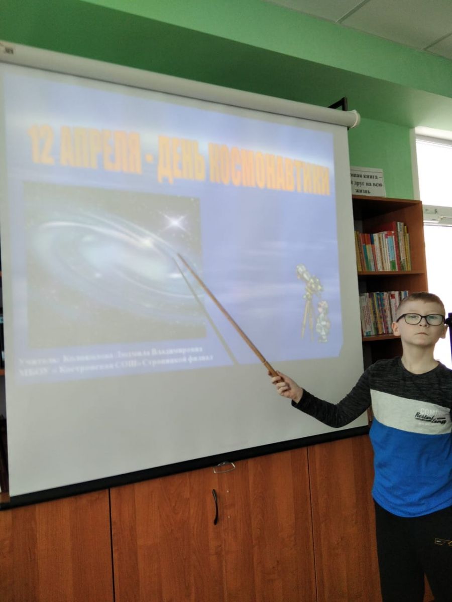 12 апреля в библиотеке для учащихся 4а и 4б классов проводился библиотечный час, посвященный ко Дню космонавтики "Человек. Вселенная. Космос". Дети познакомились с историей освоения космоса, с первыми покорителями Вселенной. Была проведена "Космическая викторина" и обзор книжной выставки.