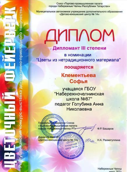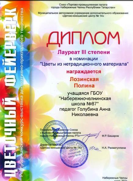 Лозинская Полина (4б класс), Клементьева Софья (2 класс) стали победительницами городского конкурса "Цветочный фейерверк"