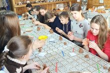 В дружеской атмосфере приятно провели время учащиеся 5,6,8 классов в Гончарной мастерской. Сначала опытным мастером был организован мастер-класс по изготовлению изделия из глины на гончарном круге: ребятам сначала рассказал, а затем показал приёмы работы с глиной: слепил мышь - сувенир для школы.