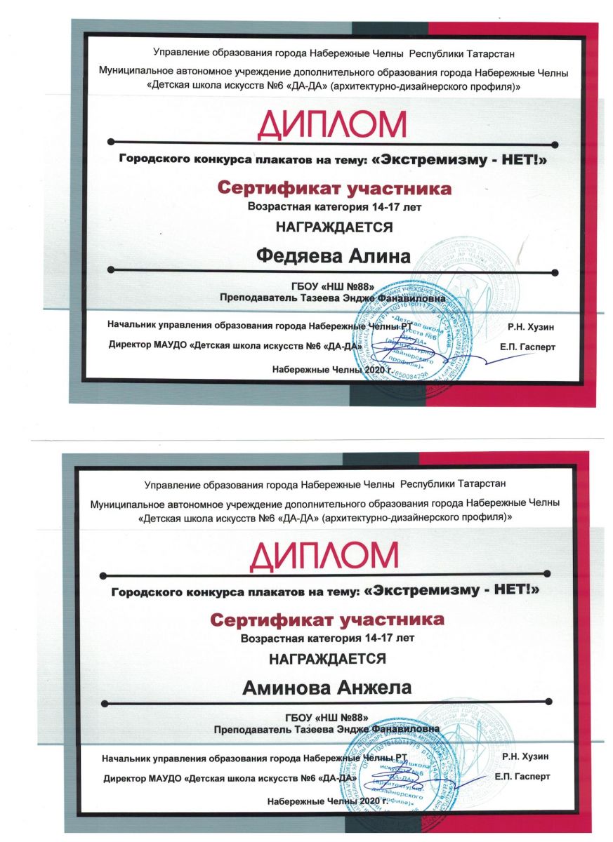 Городской конкурс плакатов на тему: "Экстремизму - НЕТ!" Сертификаты