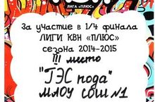 Поздравляем школьную команду КВН "ГЭСпода", занявшую III место в 1/4 финала ЛИГИ КВН "ПЛЮС" сезона 2014-2015. Молодцы! Так держать!!!