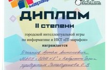 17 марта на базе ГАПОУ "Набережночелнинский педагогический колледж" прошла городская интеллектуальная игра по информаитке и ИКТ "IT-марафон", в которой приняли обучающиеся 9А класса. По результатам игры Игнатьев Артем был награжден дипломом 2 степени. Поздавляем!!!