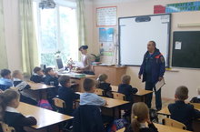 Организована встреча с сотрудниками МЧС для начальных классов. Проведена беседа по правилам безопасного поведения в общественных местах, вблизи водоемов.