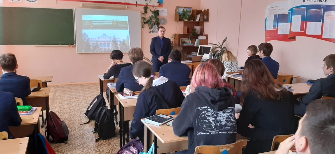 Опубликовано: 03.03.2021Сегодня в 10 классе было проведено мероприятие, направленное на ознакомление учащихся с военными училищами, в частности с Краснодарским высшим военным училищем имени генерала армии С.М. Штеменко (Ссылка на сайт училища)