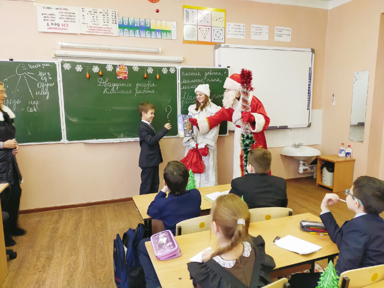 В начале декабря три ученика написали письмо Деду Морозу и попросили его исполнить их желания. И вот настал этот день и ребята получили свои долгожданные подарки. Дети были счастливыми и радостными, получив подарки от самого Деда Мороза.