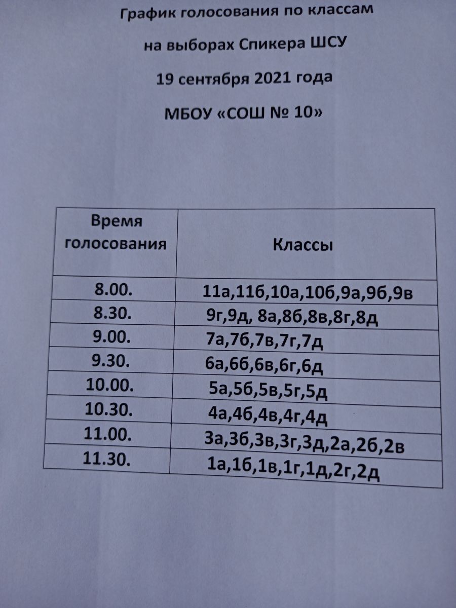 Опубликовано: 18.09.2021Подготовка к проведению выборов Спикера ШСУ МБОУ "СОШ № 10