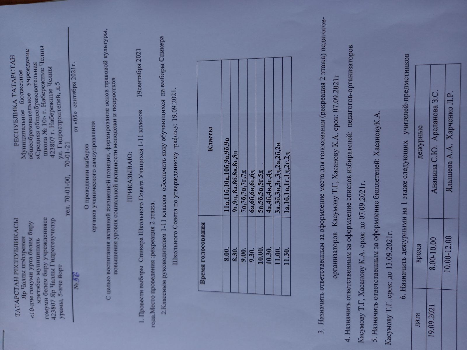 Приказ о проведении выборов Органов ученического самоуправления, лист2