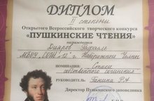 Дияров Рафаэль принял участие в открытом Всероссийском творческом конкурсе "Пушкинские чтения" и занял 2 место в номинации "Стихи собственного сочинения". Руководитель: Ганина Р.А.