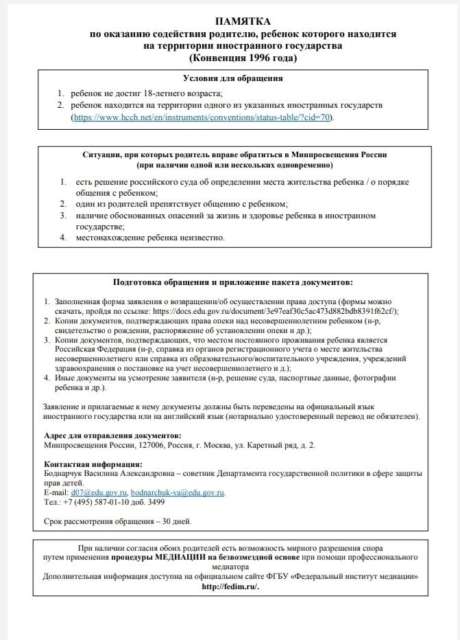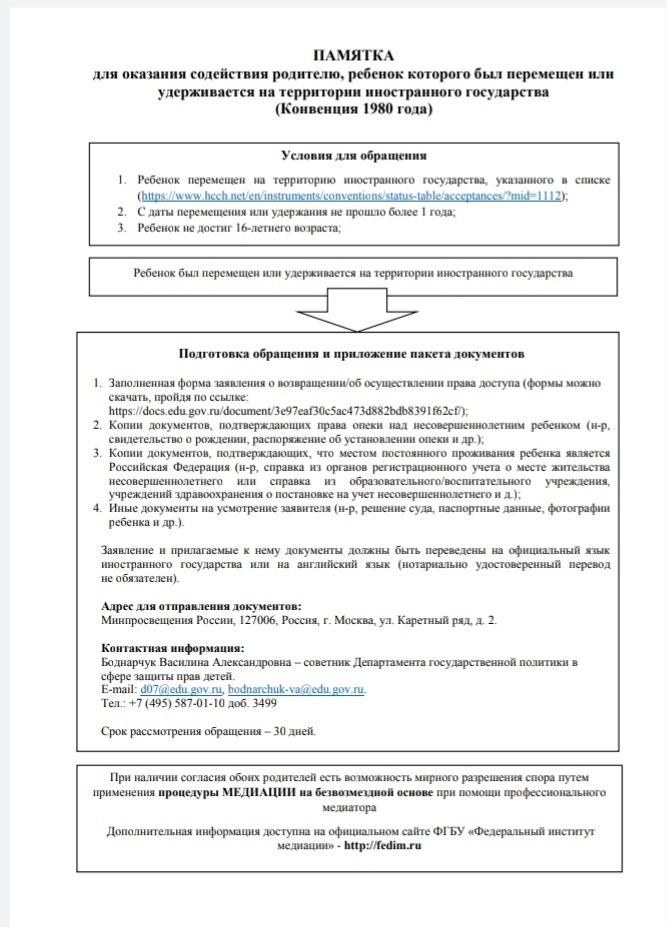 об оказании содействия гражданам в случае международного похищения детей, для организации соответствующей работы. -