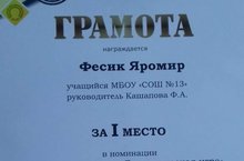 Поздравляем ученика 2 "Б" класса - Фесик Яромира с Победой в Республиканском конкурсе творческих работ "Дорога БЕЗ опасности", в номинации "Настольная игра.Дидактическая игра".