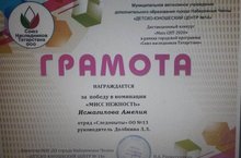 Поздравляем ученицу 4 "Б" класса Исмагилову Амелию с Победой в Дистанционном конкурсе "Мисс СНТ- 2020", в номинации "Мисс Нежность". Руководитель: Долбнина Л.Л.