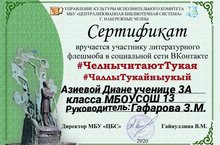 Благодарим за участие: Братьев Мартыновых Тимофея и Матвея (3 "В" класс), Сестру и брата Фатхуллиных Зилию (4 "Б" класс) и Расиля (2 "В" класс). -