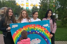 «Samosтоятельные дети» 17.05.2019 г., в преддверии Дня детских общественных организаций, на бульваре Энтузиастов волонтерский отряд учащихся 8б класса «Импульс» и представители детского объединения "Союз наследников Татарстана" провели акцию "Поделись улыбкой".