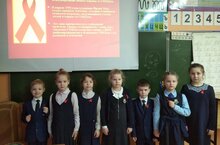 1 декабря 2021 года тимуровский отряд «Доброходы»(1Б кл) провели акцию «Красная ленточка» - символ борьбы со СПИДом.