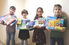 Ученики Пушкинского пролицея приняли участие в благотворительной акции. С части ярмарочных денег были приобретены игрушки и наборы для творчества для приёмных детей.