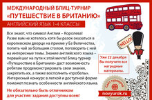 С 15 по 19 декабря ученики 3-4 классов принимают участие в Международном Блиц-турнире по английскому языку "Путешествие в Британию". Итоги будут подведены уже 22 декабря!