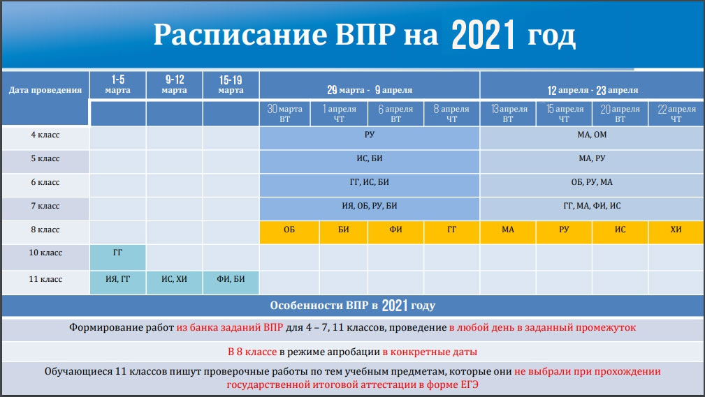 ВПР пройдут в апреле, они не будут пересекаться по срокам с проведением ЕГЭ.