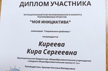 Ученица 7 б класса Киреева Кира приняла участие в муниципальном этапе Республиканского конкурса социальных проэктов "Моя инициатива"