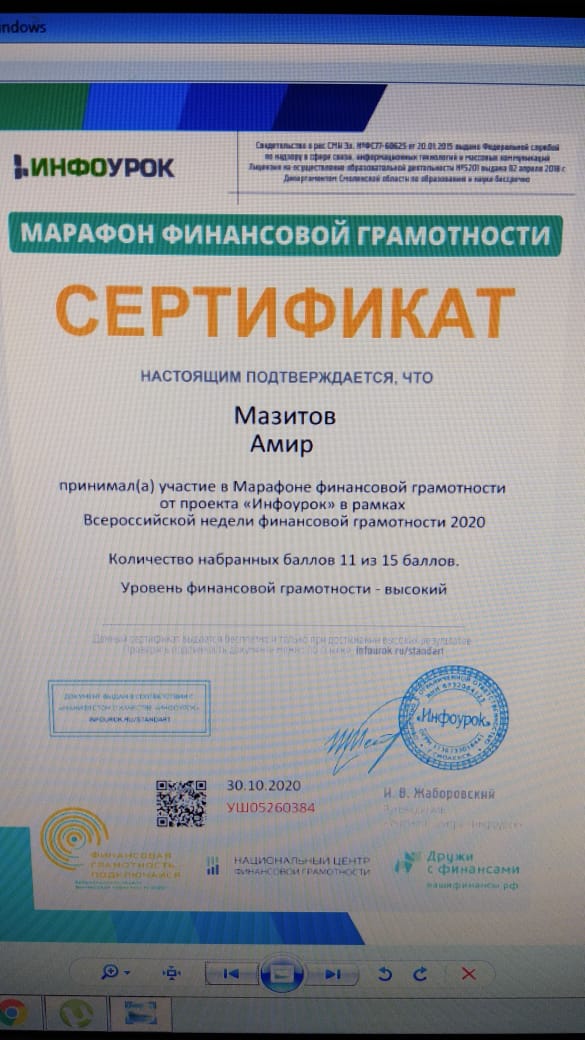 В осенней сессии, обучающиеся МБОУ «СОШ №20» получили возможность принять участие во Всероссийской неделе финансовой грамотности в онлайн – формате на портале www.dni-fq.ru