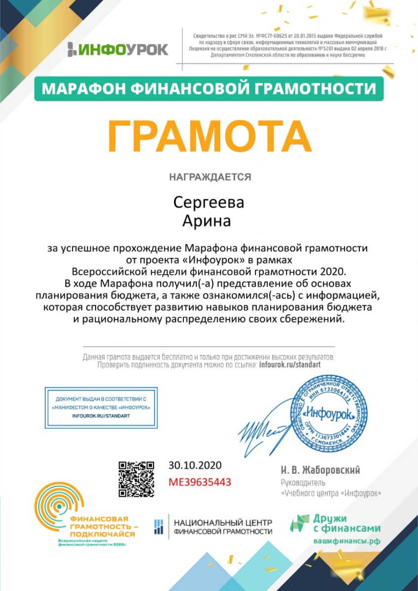 Финансовая грамотность 01.12.2020
