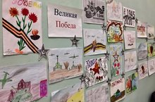 В рамках месячника военно-патриотического воспитания, организовали выставку рисунков "С днем Победы", для учеников начальной школы.