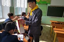 Спикер и депутат ШСУ прошлись по классам с ящиком голосования школьного этапа "Понимающий учитель"