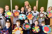 Ученики 3 в класса изготовили яркие цветы для оформления летнего пришкольного лагеря.