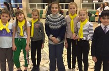 Тимуровцы вместе со своей гостьей Поповой Владой - ученицей 8б класса.