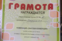 В рамках городской программы "Успех в твоих руках" поздравляем педагогическую группу нашей школы в номинации "Знатоки конвенции" в игре "Успеть за 72 часа"