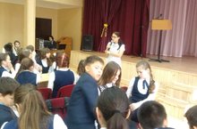 3 октября активисты самоуправления и тимуровский отряд организовали с раннего утра поздравительное представление «Спасибо, учитель» у входа школы. Дежурный класс оформил первый этаж школы шариками, красивыми рисунками. Царствовала в школе праздничная атмосфера, ребята встречали всех учителей поздравительными высказываниями!