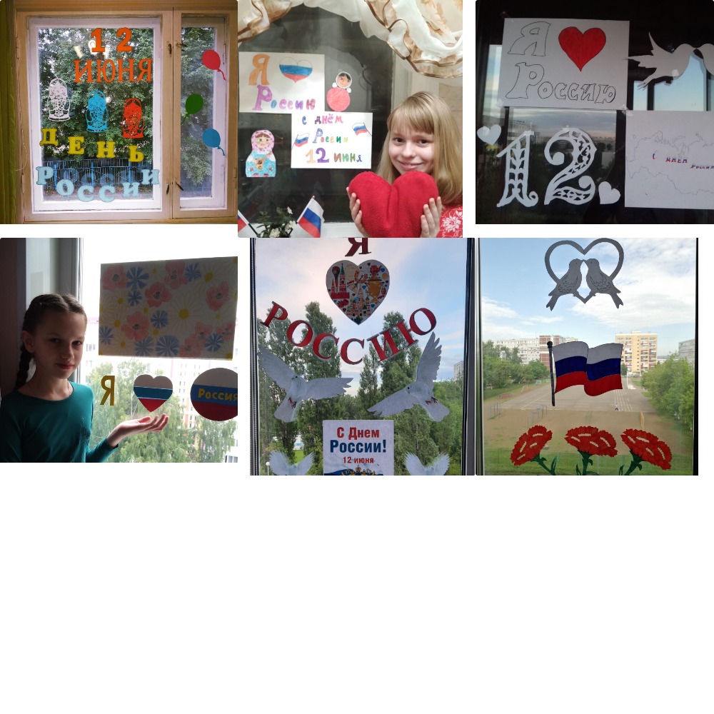 - Флешмоб #ОКНАРОССИИ (все желающие делают рисунок/поздравление с Днем России и приклеивают его на окно, затем фотографируют и выкладывают в соцсети с хештегами). фотоотчет