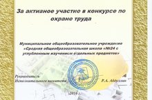 СОШ №24 награждена дипломом за активное участие в конкурсе по охране труда