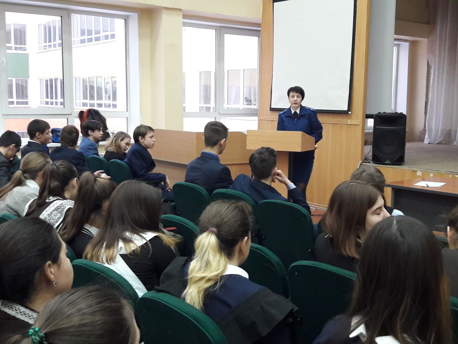 Опубликовано: 20.11.2018Министерством юстиции Республики Татарстан в соответствии с решением Правительственной комиссии по вопросам реализации Федерального закона «О бесплатной юридической помощи в Российской Федерации» (протокол от 25 сентября 2013 г. №2) с 2013 года на территории республики ежегодно 20 ноября проводится Всероссийский День правовой помощи детям. В рамках этой акции для учащихся 7-9 классов в школе прошли лекции капитана полиции ОДН ОП №1 «Автозаводский» Савинова Николая Юрьевича по теме «Профилактика правонарушений» и старшего помощника прокурора города Лизуновой Натальи Владимировны по теме «Права и обязанности несовершеннолетних».