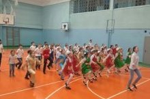 в спортивном зале нашей школы проводился Флешмоб "Танцы народов мира" при участии