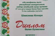 Ученица нашей школы, Шамсиева Ильнара, стала ПОБЕДИТЕЛЬНИЦЕЙ муниципального этапа республиканского конкурса «Ак калфаклы кыз»!