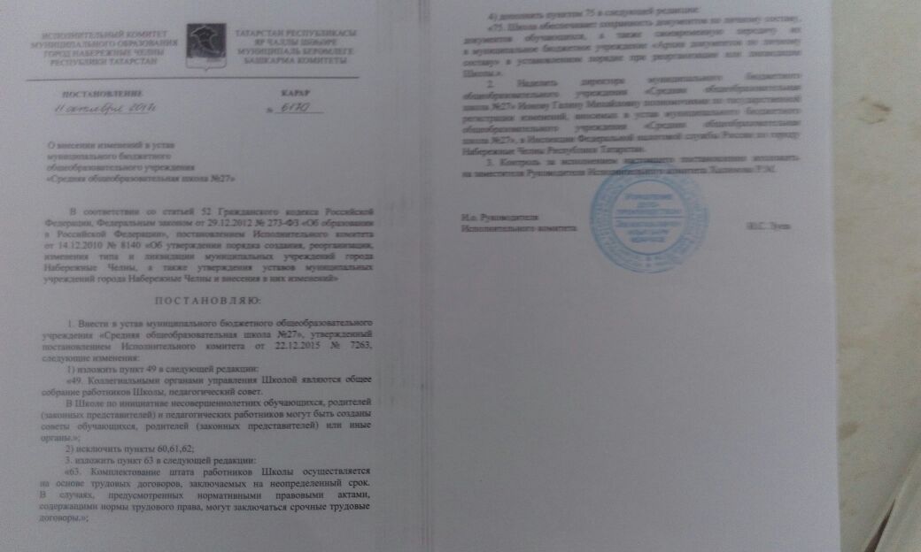 Копия Постановления Исполнительного комитета муниципального образования город Набережные Челны