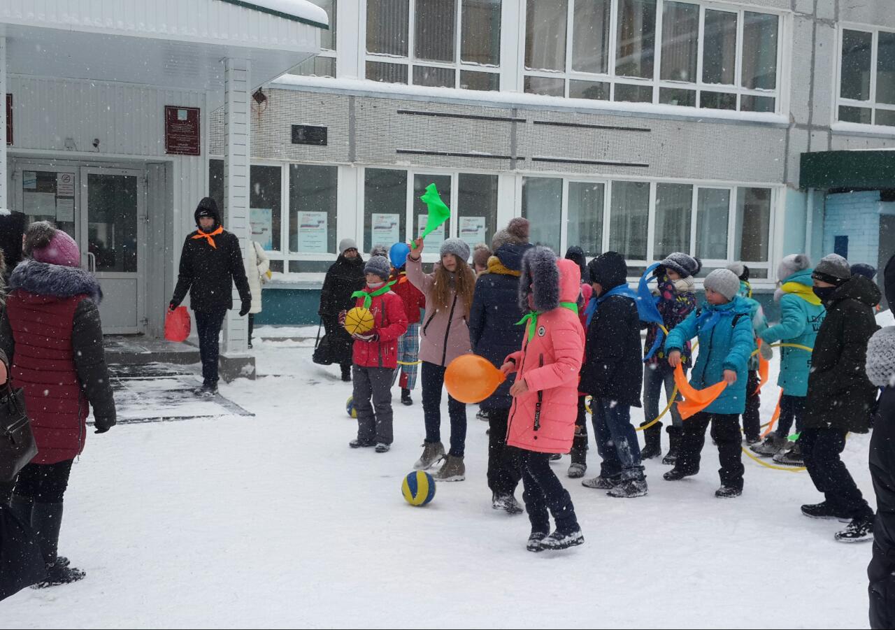 18 марта на территории школы прошел спортивный праздник, в рамках которого были проведены веселые старты, спортивный флешмоб с участием учащихся и их родителей. Участников спортивных мероприятий встречали песнями и танцами. Мероприятие завершилось награждением участников и победителей школьного этапа республиканского конкурса "Сувениры России".