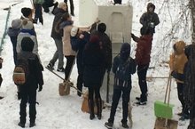 Ребята с интузиазмом готовят снежные фигуры.