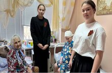 Получившиеся ленточки ученицы 9б класса подарили жителям Дома-интернат престарелых и инвалидов, поздравив их с наступающим праздником, с Днём Победы -