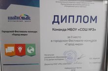 Поздравляем команду МБОУ "СОШ №3" за 2 место в городском Фестивале -конкурсе "Город мира". Руководитель команды Селиванова Н.А.