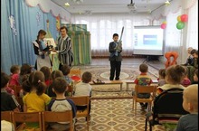 Учащиеся 7 Б класса - члены отряда "Искатель" при школьном музее боевой славы посетили подшефный садик №11 "Йолдыз". Вместе с руководителем музея Кузьминых В.А. они рассказали о первом полете человека в космос, принесли с собой экспонаты музея: костюм космонавта, модель ракеты, фуражку летчика, спасательный жилет и др.
