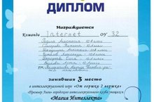 Поздравляем команду Internet, учащихся 10 а класса, учителя математики Тимерханову Н.Ф. с победой в иинтеллектуальной игре "От горшка 2 вершка" "Премьер Лиги" городского интеллектуального клуба учащихся "Магия Интеллекта"
