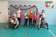 Ученики 1 В класса -за здоровый образ жизни!!! Пользуемся возможностью поработать с мячами в большом зале!