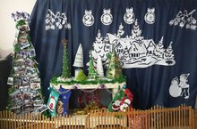 Ребята и учителя украсили 1 этаж школы Ёлка школьных событий-2019 украшалась фотографиями школьных мероприятий, которые прошли в 2019 году.
