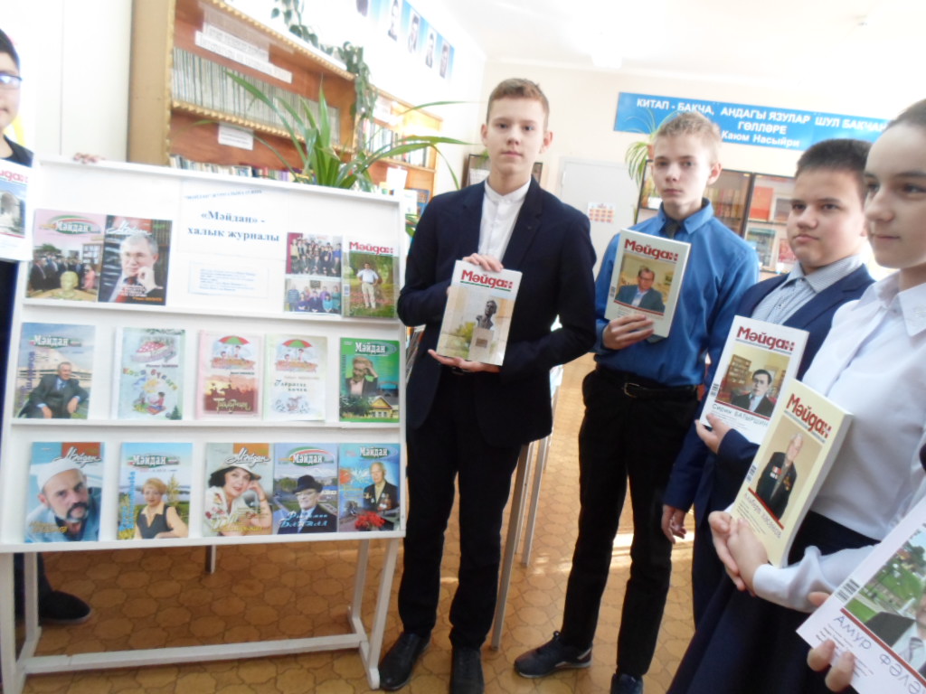 Мәктәп китапханәсендә “Мәйдан” журналының 15 еллыгына күргәзмә оештырылды. Һәр сыйныф укучысы андагы яңалыклар белән таныша ала.